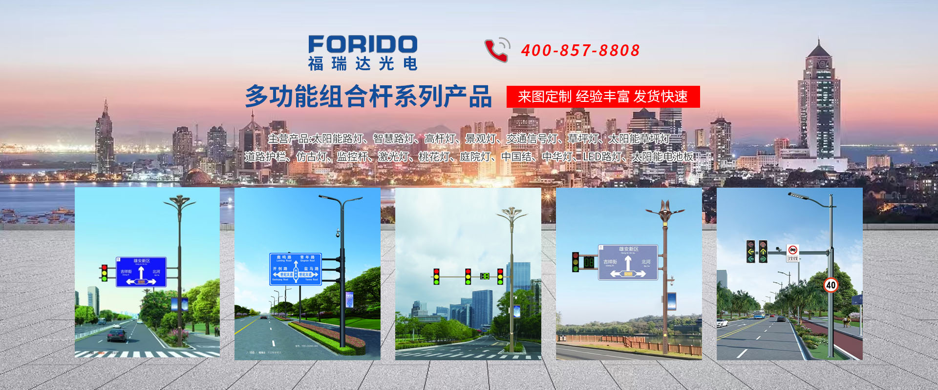 揚(yáng)州福瑞達(dá)光電科技有限公司位于淮左名都?xì)v史文化名城、中國(guó)路燈制造基地?fù)P州市北郊菱塘工業(yè)園,公司占地面積76000平方米,注冊(cè)資金10518萬(wàn)元,擁有高級(jí)技術(shù)嫻熟的員工280多人,擁有大型折彎?rùn)C(jī)、激光切割、數(shù)控注塑機(jī)、壓鑄機(jī)、自動(dòng)埋弧焊、氣焊、彩色粉末靜電噴塑等大型自動(dòng)化設(shè)備,我公司是一家集設(shè)計(jì)、研發(fā)、生產(chǎn)、銷售、施工安裝服務(wù)為一體的戶外交通照明產(chǎn)品制造商,主要生產(chǎn)智慧路燈、太陽(yáng)能路燈、LED路燈、高桿燈、景觀燈、交通信號(hào)燈、交通標(biāo)志牌、通信鐵塔、路跨鋼結(jié)構(gòu)、公交站臺(tái)、太陽(yáng)能光伏組件、景點(diǎn)亮化、樓宇亮化工程的設(shè)計(jì)施工等。公司秉承開拓創(chuàng)新、銳意進(jìn)取、精誠(chéng)服務(wù)的企業(yè)精神,堅(jiān)持以“誠(chéng)信為本、技術(shù)為先、服務(wù)是金”的合作理念,我們憑借先進(jìn)的制造工藝、優(yōu)質(zhì)的產(chǎn)品質(zhì)量、合理的市場(chǎng)價(jià)格和完善的售后服務(wù)贏得了廣闊的市場(chǎng)和客戶的信賴。 我公司已通過ISO9001質(zhì)量體系認(rèn)證、ISO14001環(huán)境管理體認(rèn)證,CQC產(chǎn)品認(rèn)證,中國(guó)節(jié)能產(chǎn)品認(rèn)證,通過“CCC”強(qiáng)制性產(chǎn)品認(rèn)證,具有市政總承包,照明,交安,設(shè)計(jì)等資質(zhì)···